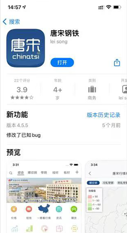 唐宋公司推出的智能手机应用软件,以信息平台为依托打造的唐宋钢铁用户专用的信息通道,推出商务中心、资讯中心、实时期货中心等功能应用平台。提供更稳定的接收、更便捷的订阅、更丰富的内容,让客户能够随时随地了解钢铁行业动态,为客户提供市场决策参考。